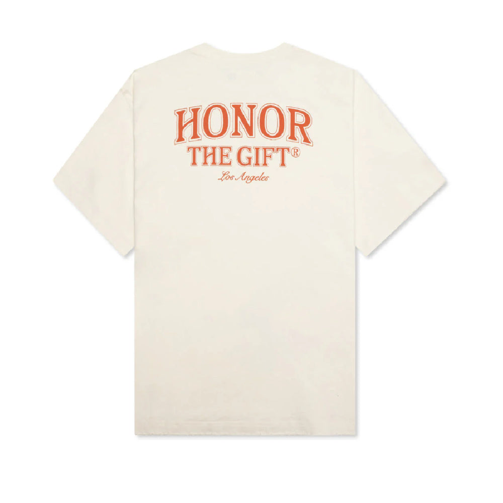 Russell Westbrook continues to pay tribute to the L.A. roots - “where anyone can take themselves” - of his label Honor the Gift and this Floral pocket t-shirt. Decorated with a vintage-style print of the iconic slogan, this updated casual classic is designed to empower us wherever we are in the world. Count us in! 100% Cotton, Ribbed Crewneck, Chest Pocket, Printed Branding.