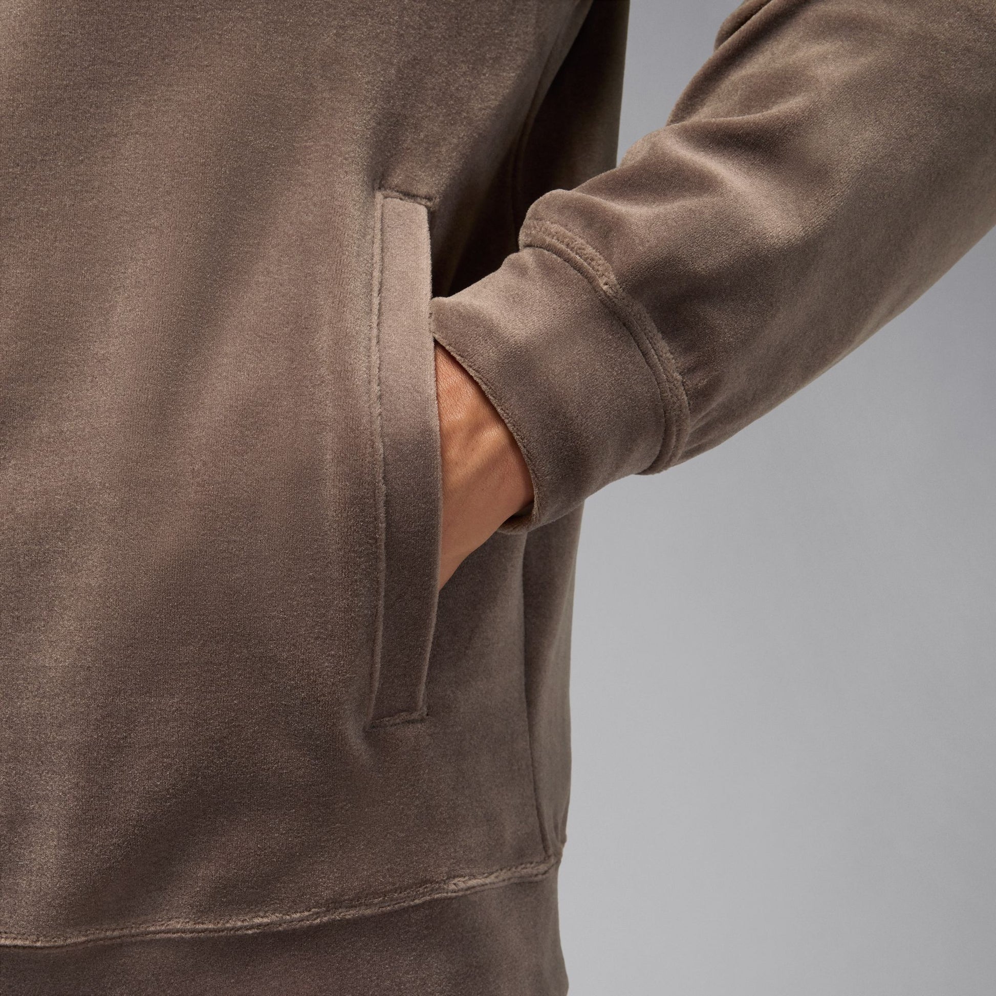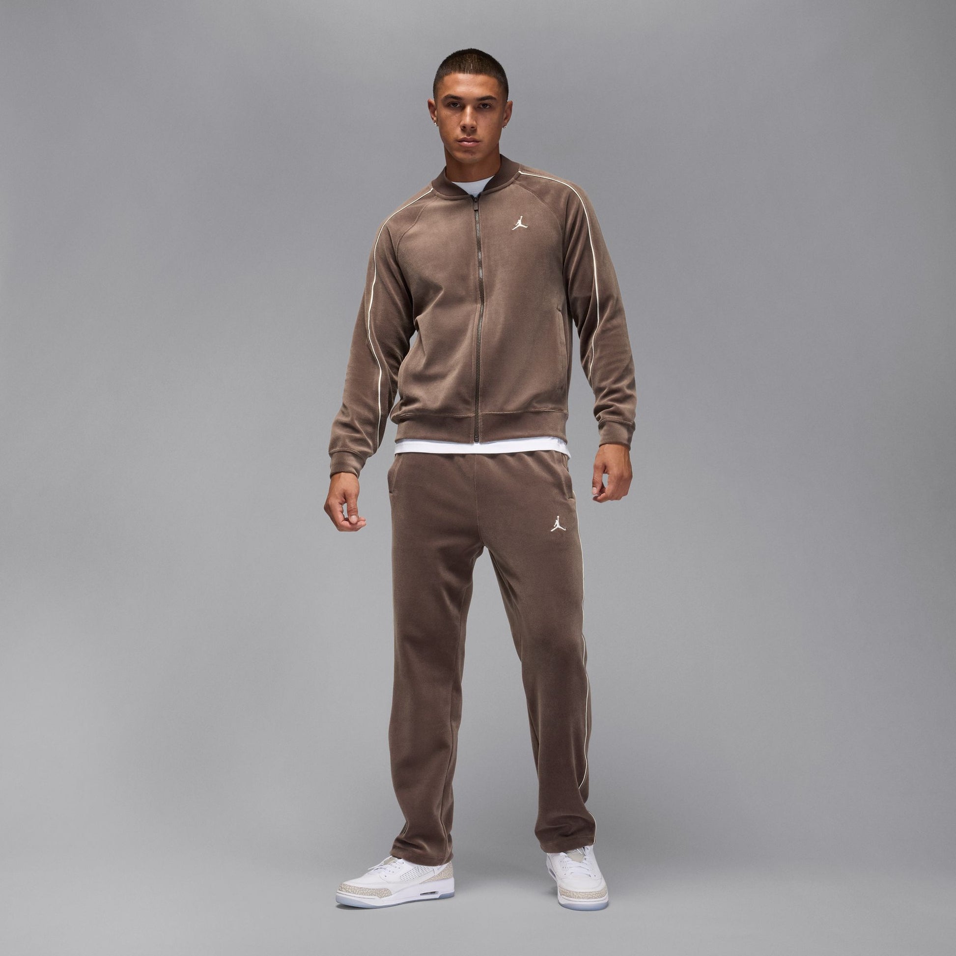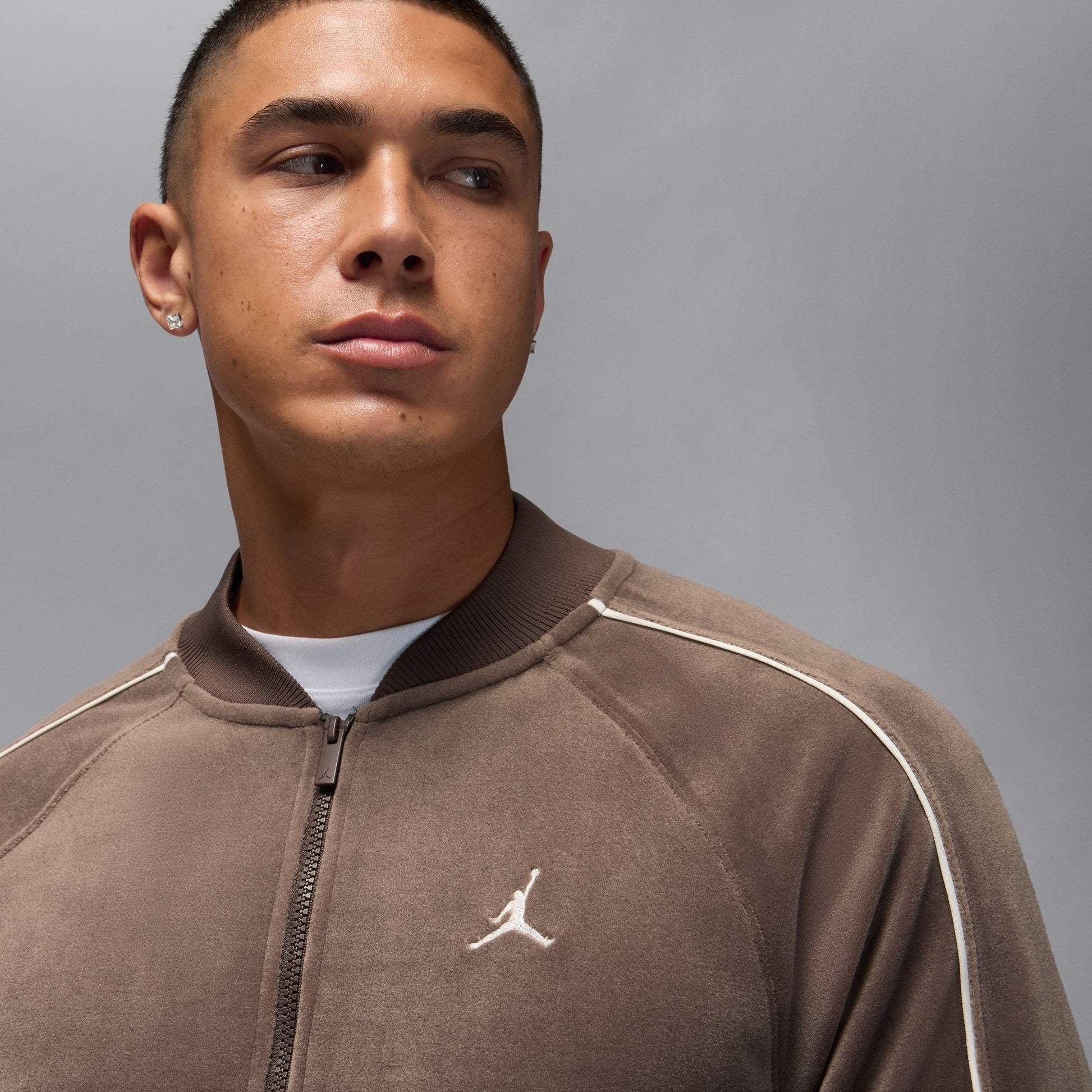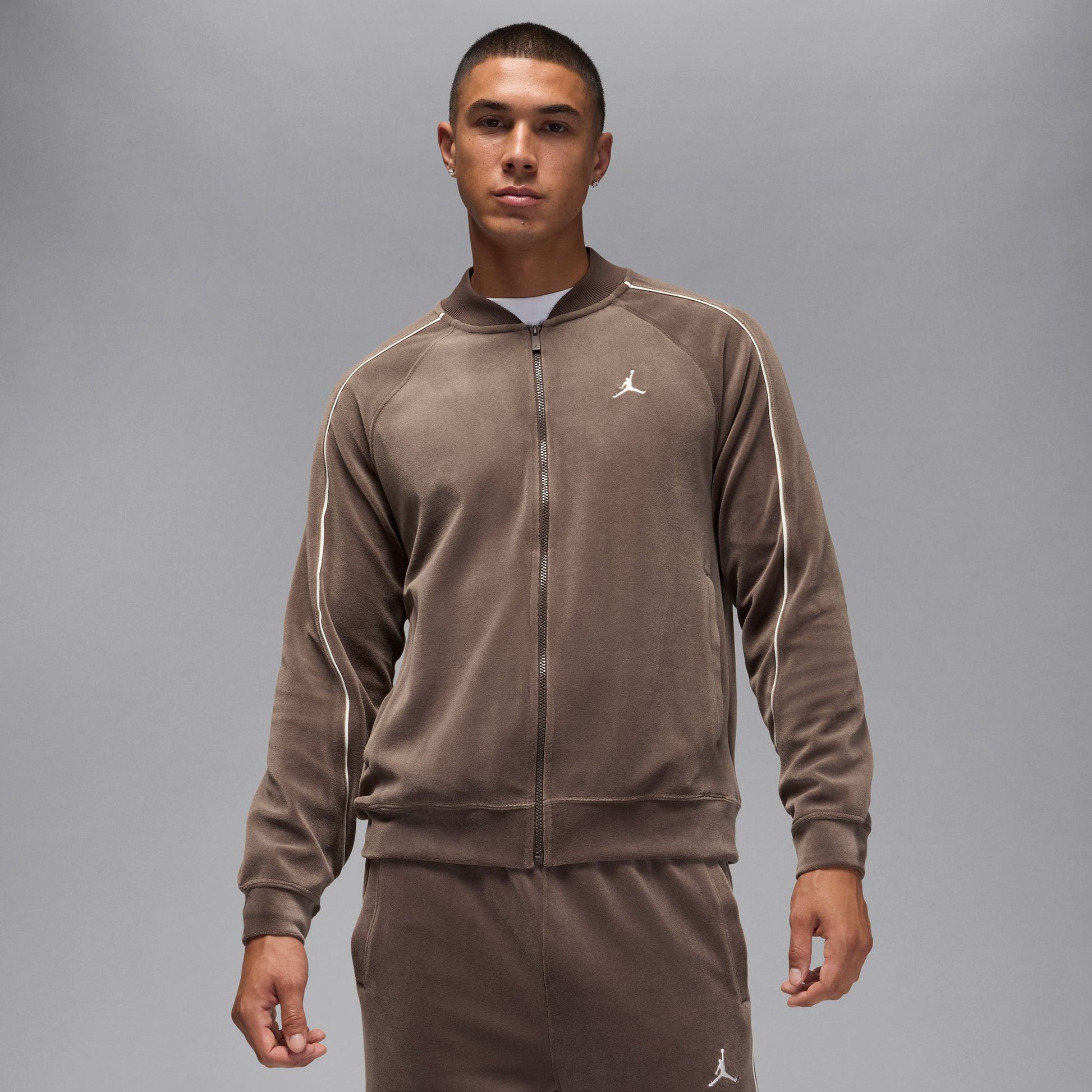 This jacket gives a luxe feel to your outerwear game. Made with cozy velour fabric, it also features subtle piping that nods towards early Jordan Brand looks.
