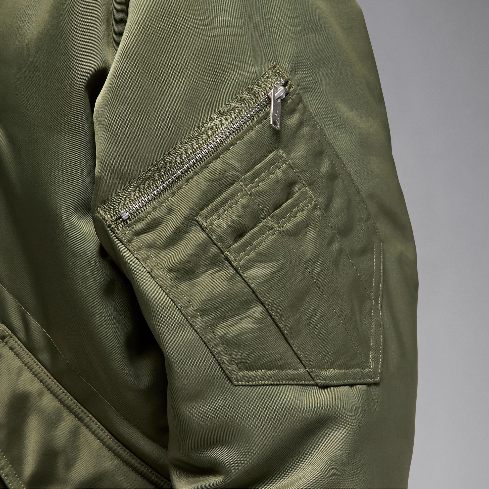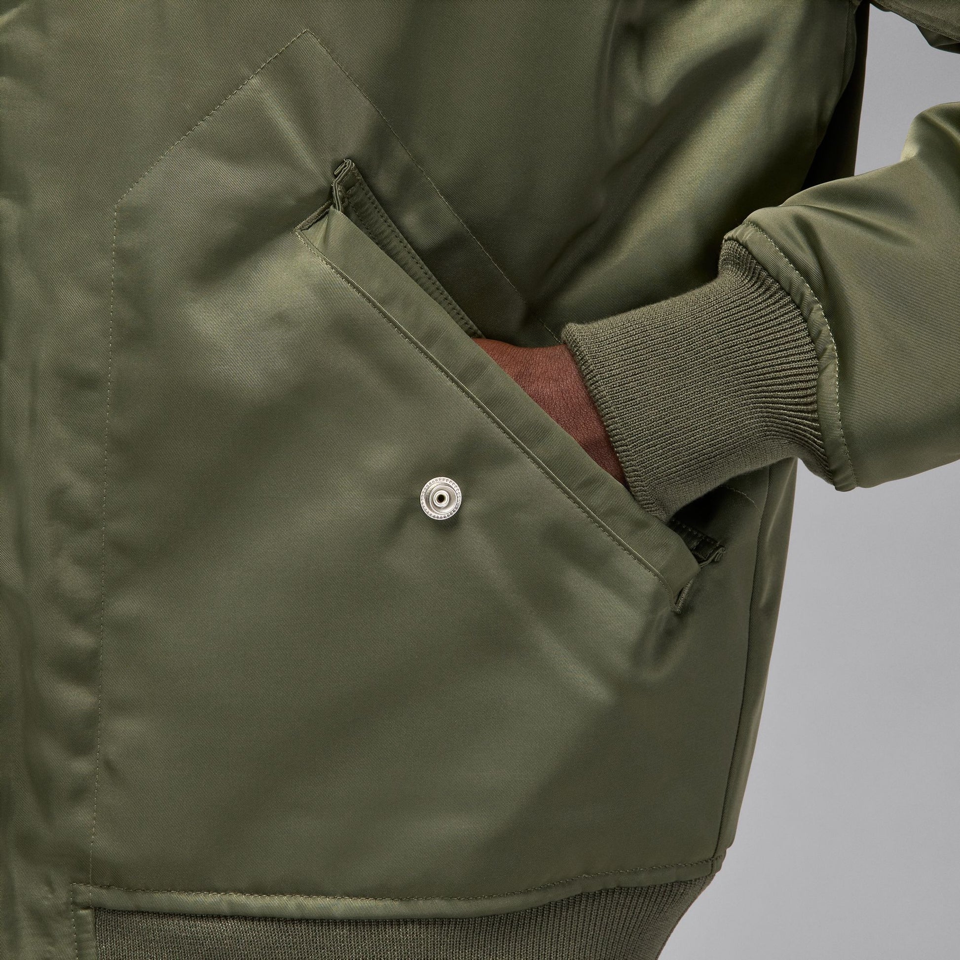 Jordan's take on the classic bomber jacket gets a fresh update with a three-panel hood. A water-repellent twill shell adds durability while a smooth woven lining and loose fit make layering easy. Signature details like a zippered pocket on the sleeve and ribbed cuffs and hem give you heritage Jordan style.