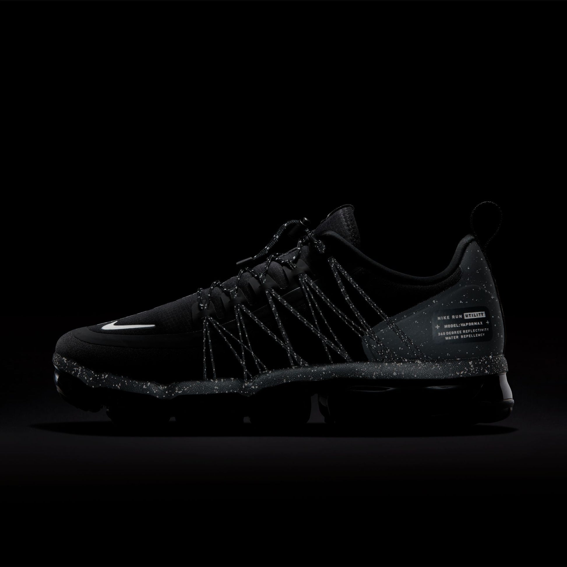 The Nike Air VaporMax Run Utility gets remixed to conquer dark, wet routes. A water-repellent upper helps keep your feet dry, while the toggle lacing is quick and easy to adjust. Elements throughout the upper pop with reflectivity.
