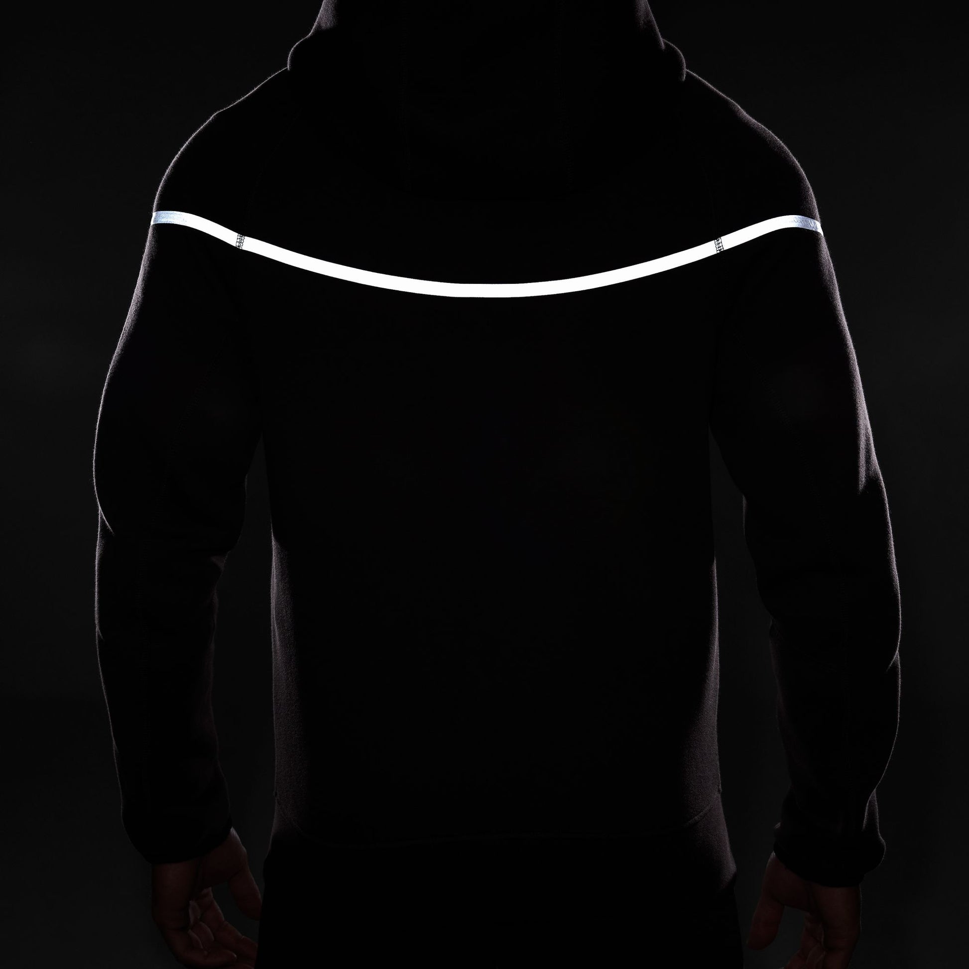 Nike Tech Windrunner Men's Reflective Details Fleece Full-Zip Jacket This classic Tech Fleece Windrunner offers polished warmth and comfort, but with reflective details that light up your look. Zippered pockets let you securely stow your essentials on the go. Our premium, smooth-on-both-sides fleece feels warmer and softer than ever, while keeping the same lightweight build you love. Articulated seems, taped Tech pockets and the Futura logo let you know it's classic Tech Fleece. Designed to feel roomy through the body for easy movement and layering. Double-layer hood improves warmth and keeps the look clean.
